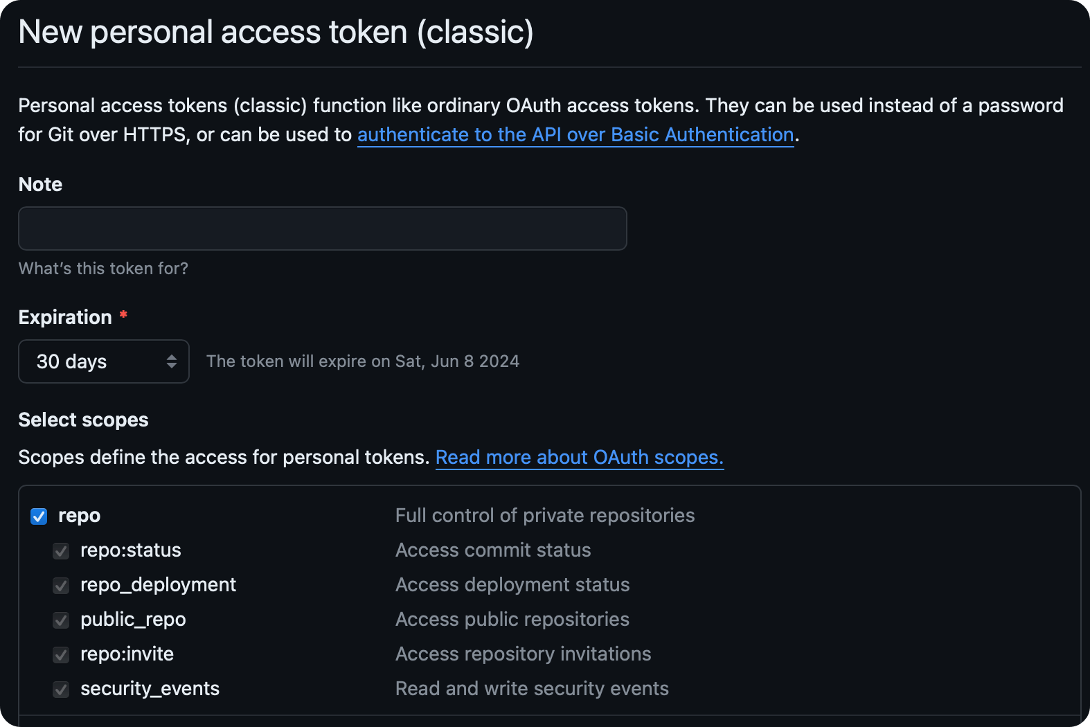 Selsct scpes : 레퍼지터리 관리 정도만 할 거라면 repo에 체크